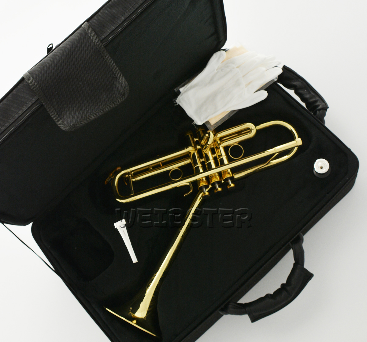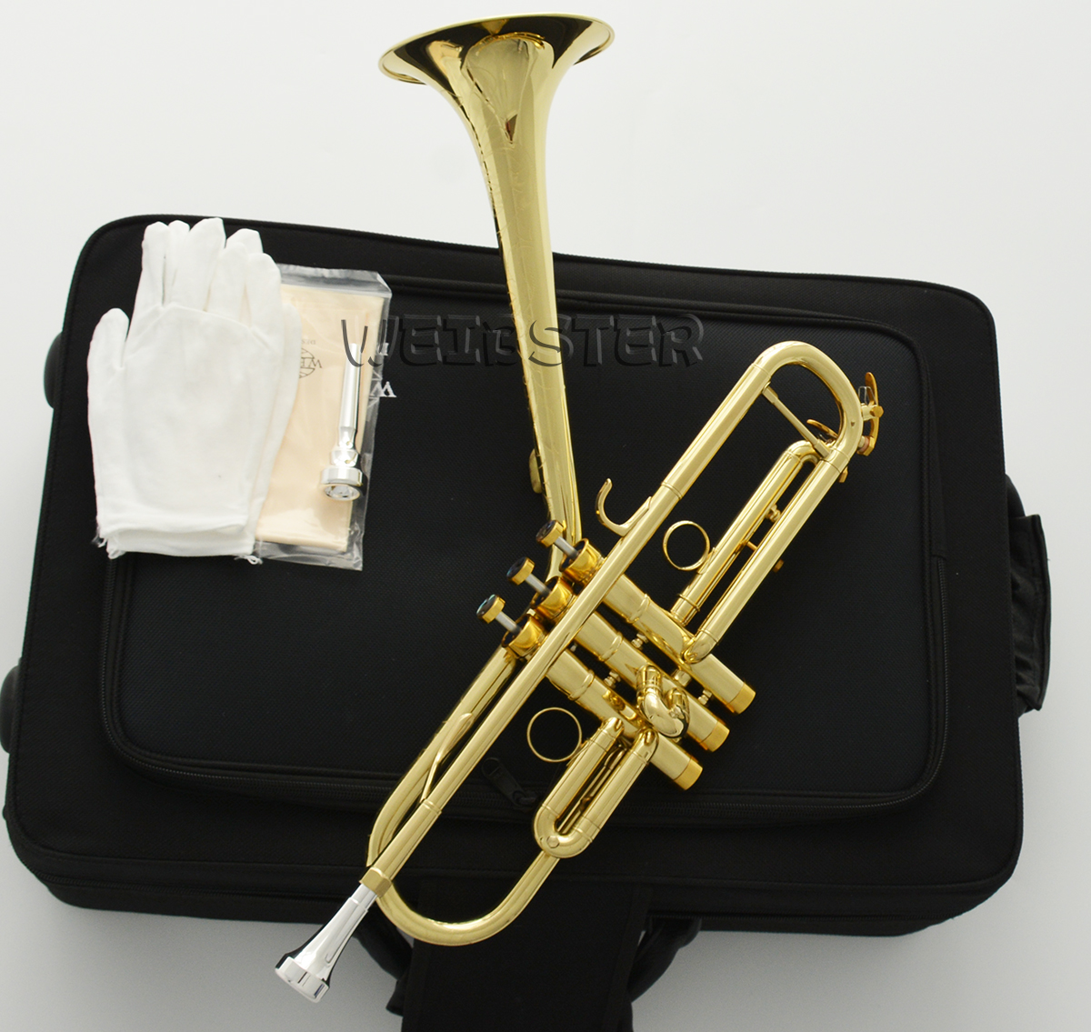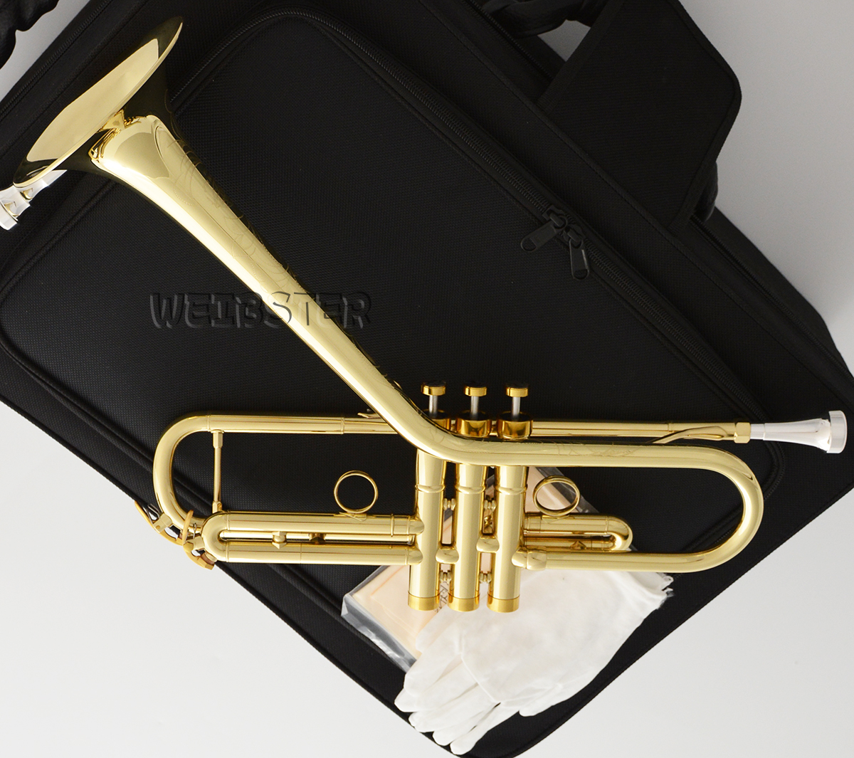This is a Brand New great looking and sounding professional Dizzy style Trumpet Bb-Flat, have a good qualty, type in tune ,key of Bb suitable for the professional player. This well crafted hand made instrument, and made from all new heavy gauge yellow brass material. With decades of experience behind the manufacture of this fine instrument, you can be absolutely confident in its performance and durability. .