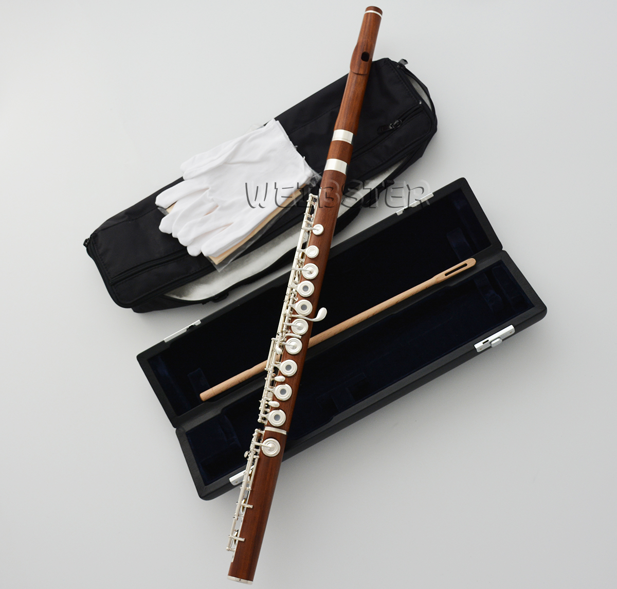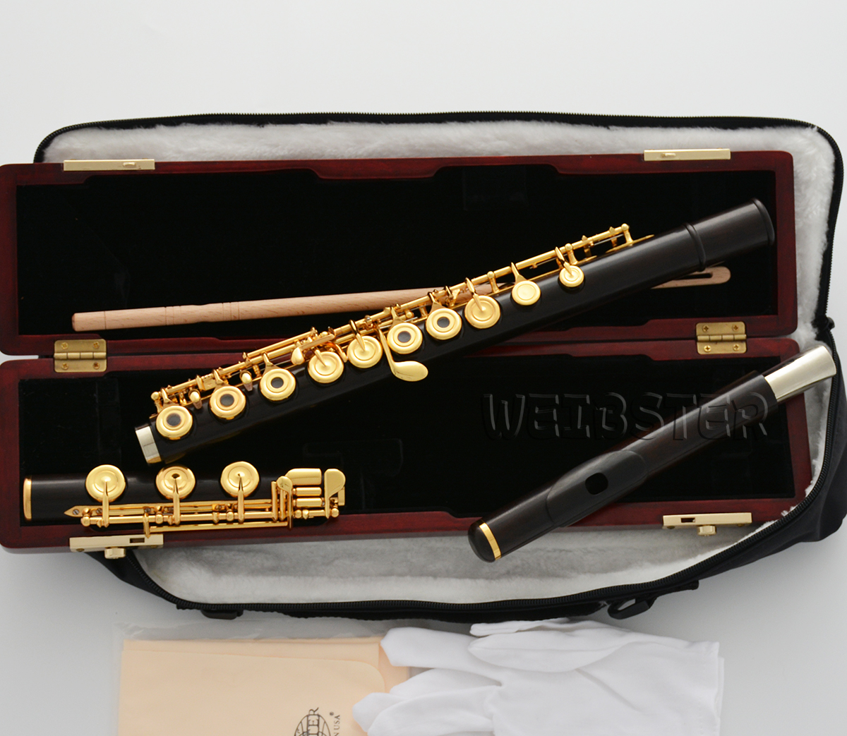 Grenadilla Black Wooden Gold Plated Flute Open hole B foot Split E With Wood Case