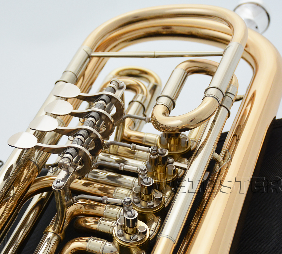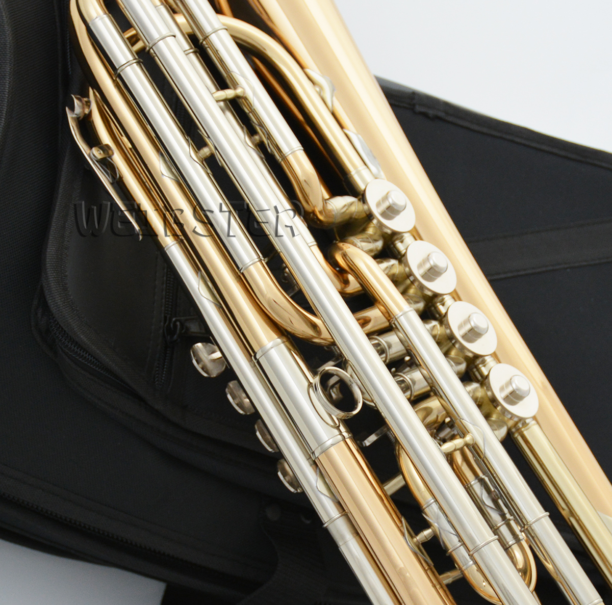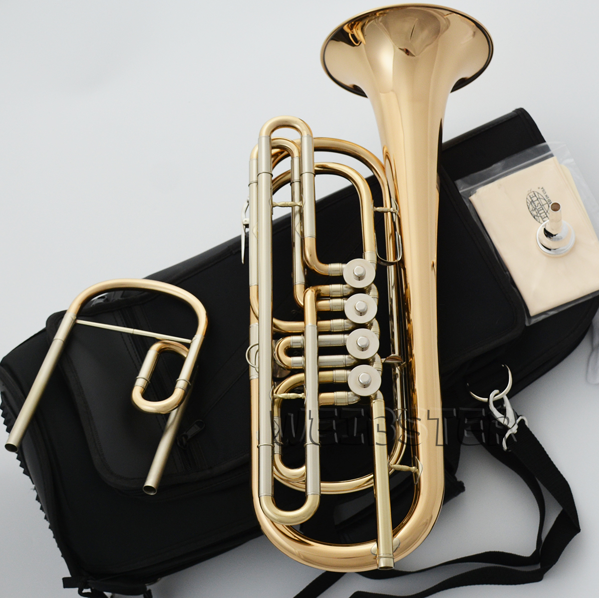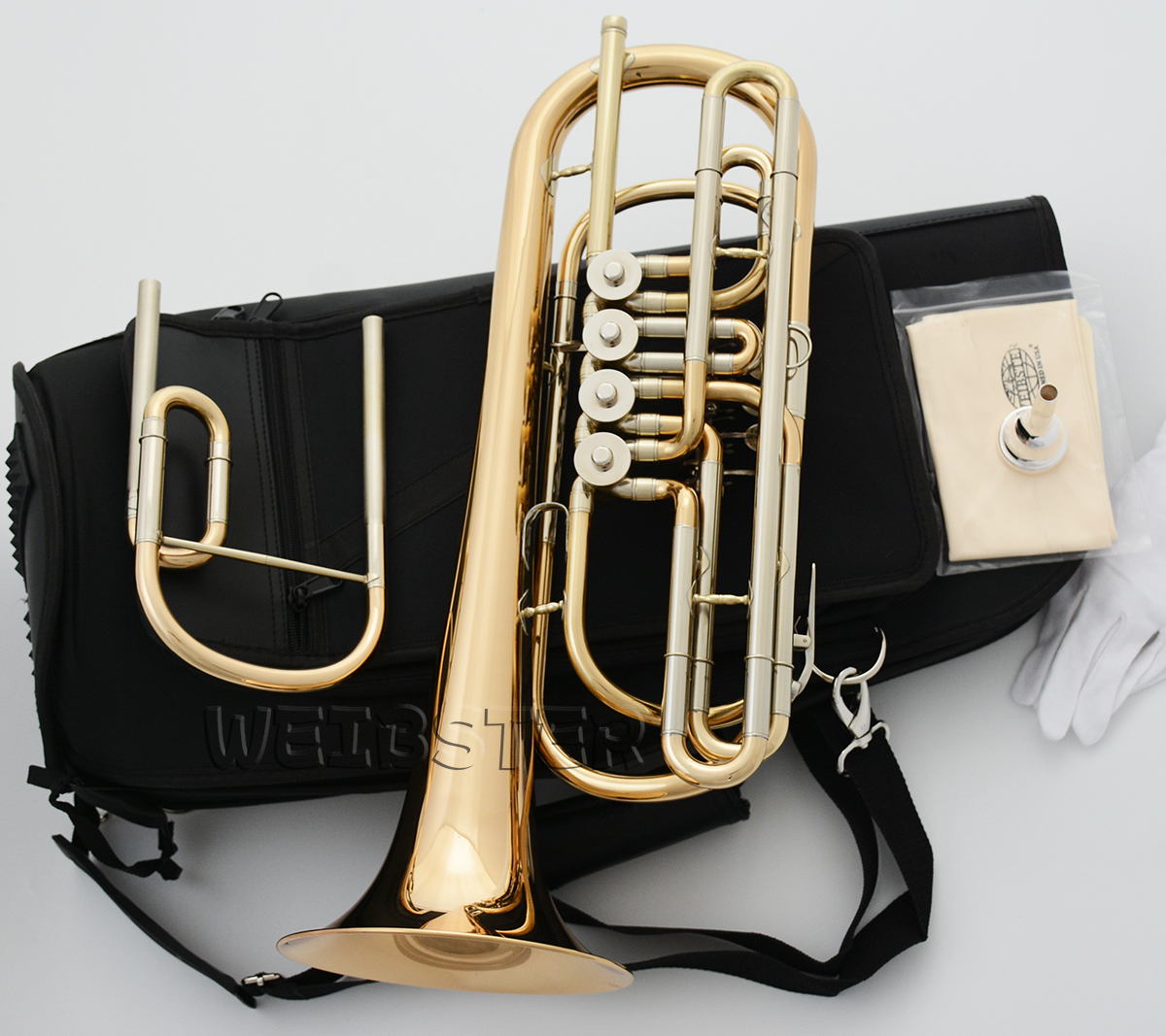This is a Brand New great looking and sounding 4 Rotary Valves Bass Trumpet, Key of Bb have a Very good qualty, type in tune ,suitable for the advanced or professional musical players. This well crafted hand made instrument, and made from all new heavy gauge Gold brass material. With decades of experience behind the manufacture of this fine instrument, you can be absolutely confident in its performance and durability. .