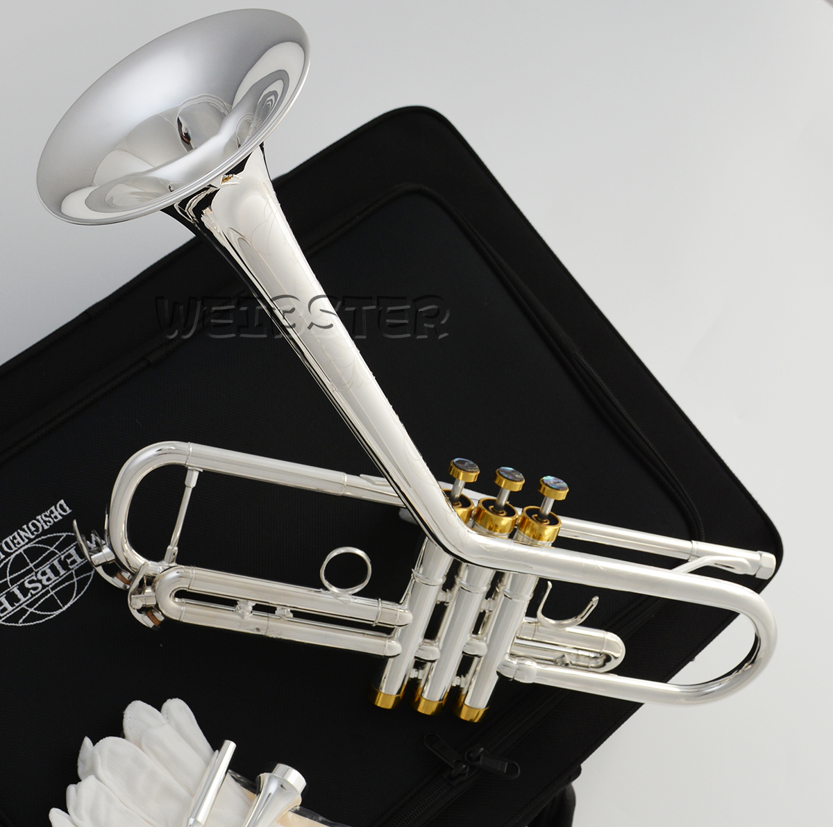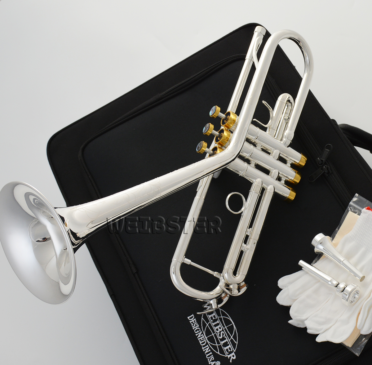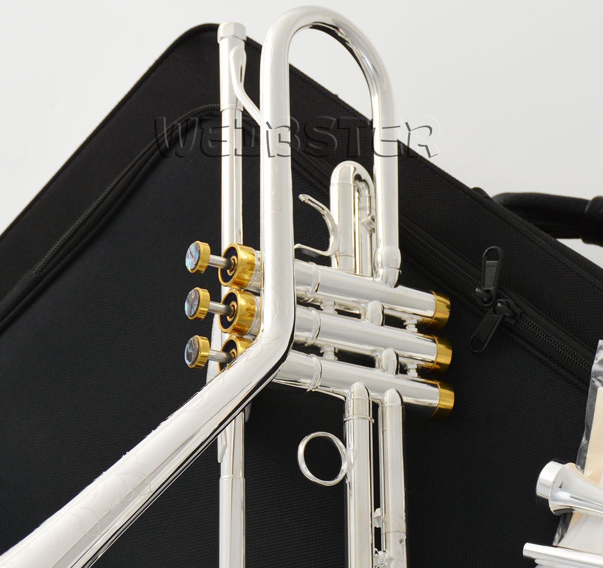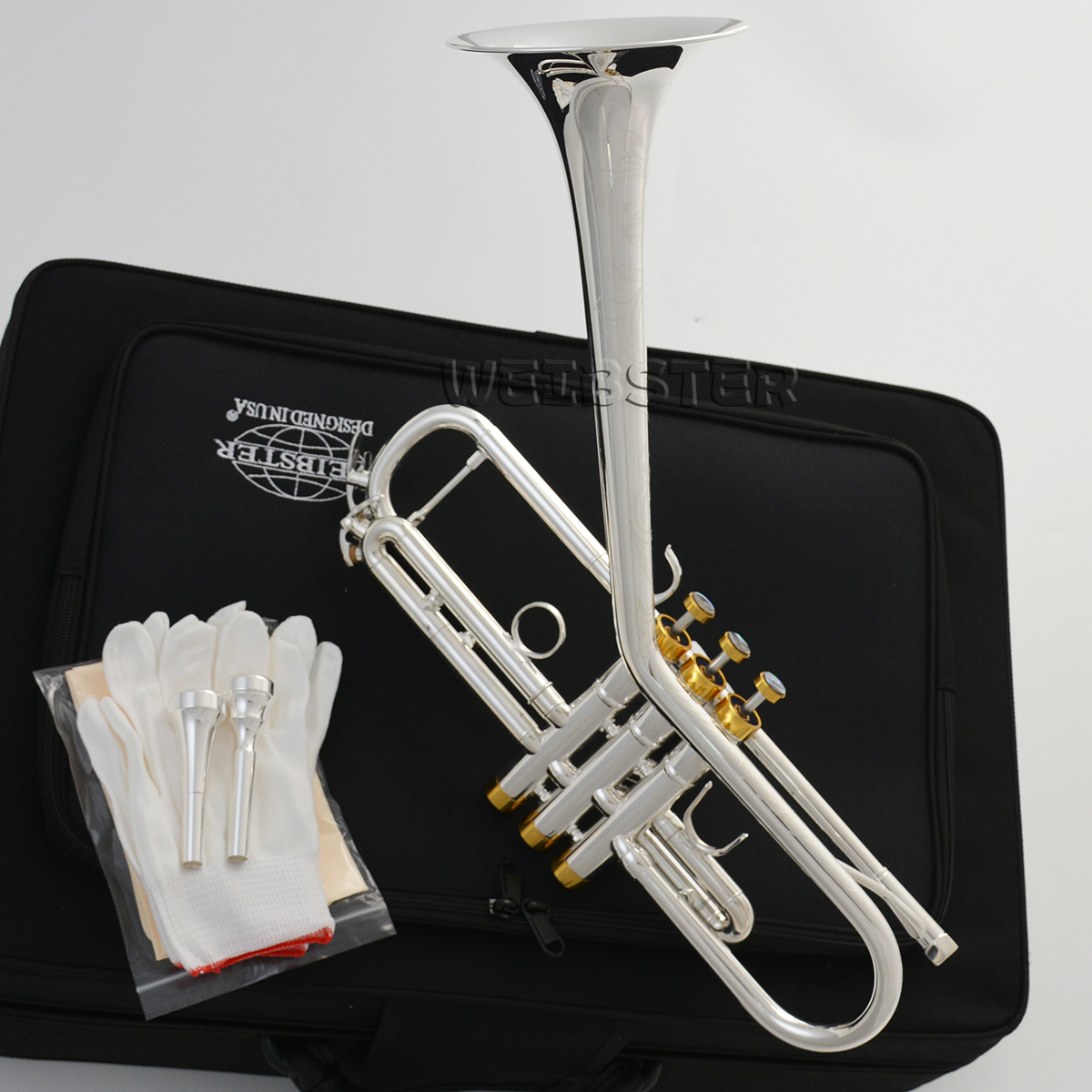 Professional Dizzy style Trumpet Engraving Bell Silver Plated horn 2 Mouthpiece