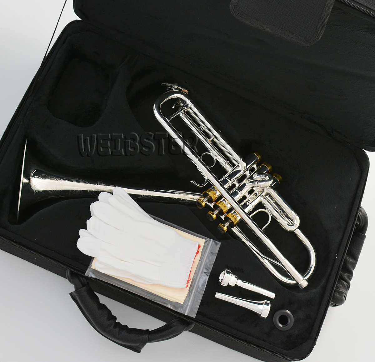 This is a Brand New great looking and sounding professional Dizzy style Trumpet Bb-Flat, have a good qualty, type in tune ,key of Bb suitable for the professional player. This well crafted hand made instrument, and made from all new heavy gauge yellow brass material. With decades of experience behind the manufacture of this fine instrument, you can be absolutely confident in its performance and durability. .