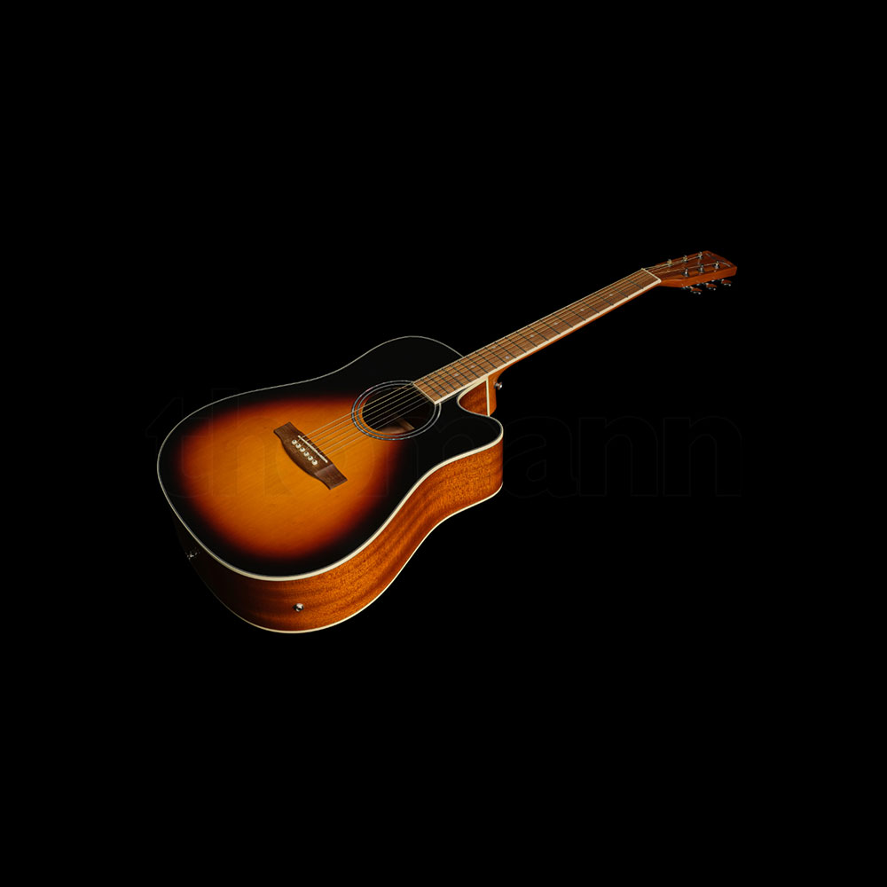 The Harley Benton D-120CE VS is a typical steel-string guitar with a robust dovetail construction, which also allows solo playing with its cutaway.