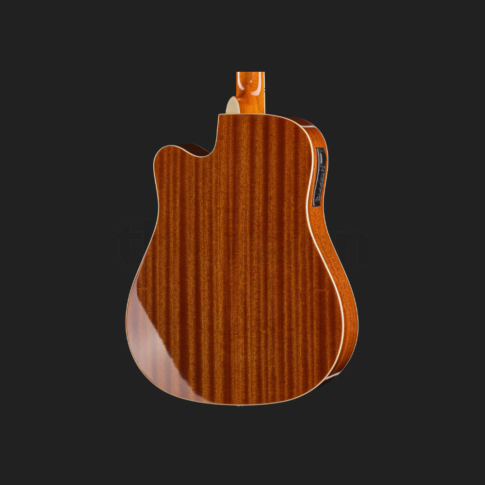 Typical for the large body of a dreadnought guitar, the Harley Benton D-120CE VS delivers a correspondingly loud and comparatively full sound,