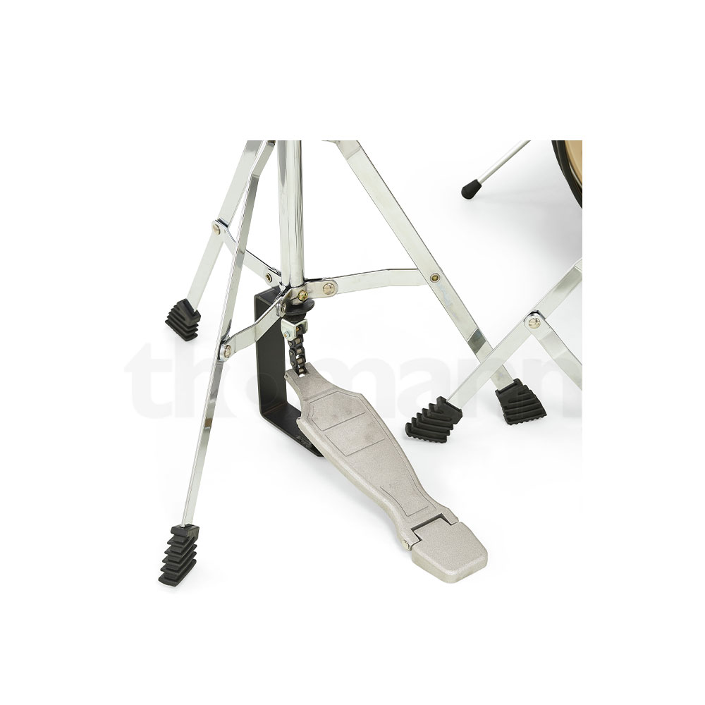 right away. The hi-hat and bass drum pedals feature a durable chain drive, and the chrome-plated, single-braced hardware is stable and durable. In practice, the