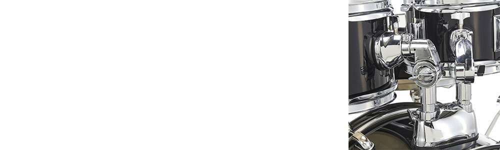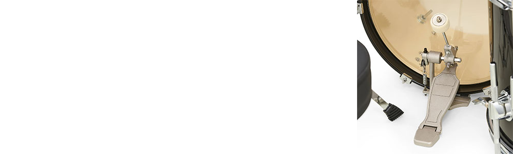 configuration. Thanks to the compact 16" bass drum, the flat tom toms, and the 12" snare, even the smallest budding rock stars can easily reach all parts of the set.