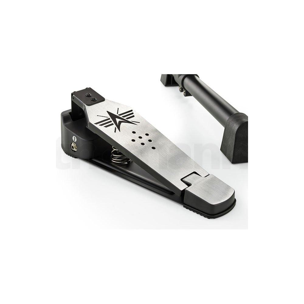 and a hi-hat, all attached to an aluminium rack, make up the core of the set. There are two controllers for footwork, and the package also includes