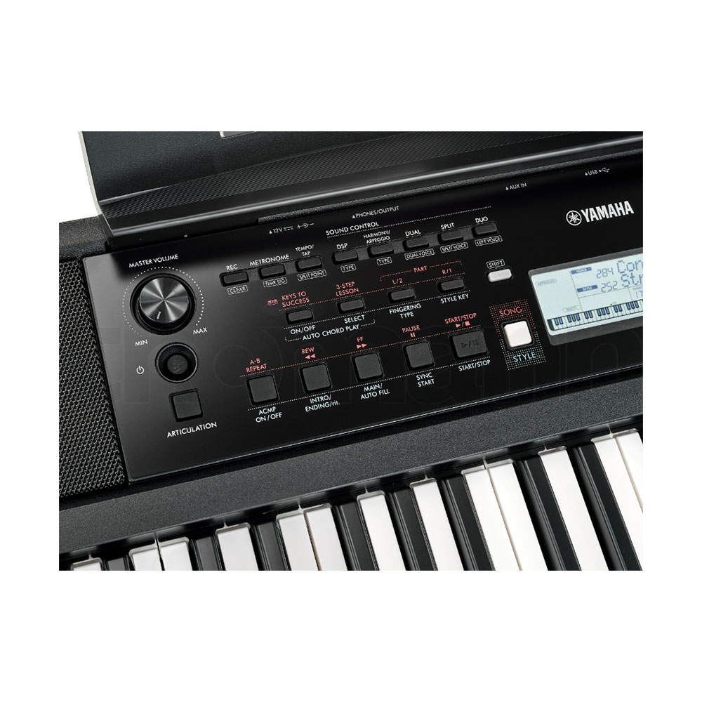 there are numerous accompaniment styles, onboard songs to play along to, and a new Auto Chord Play function. The Yamaha PSR-E383 has everything close to hand,
